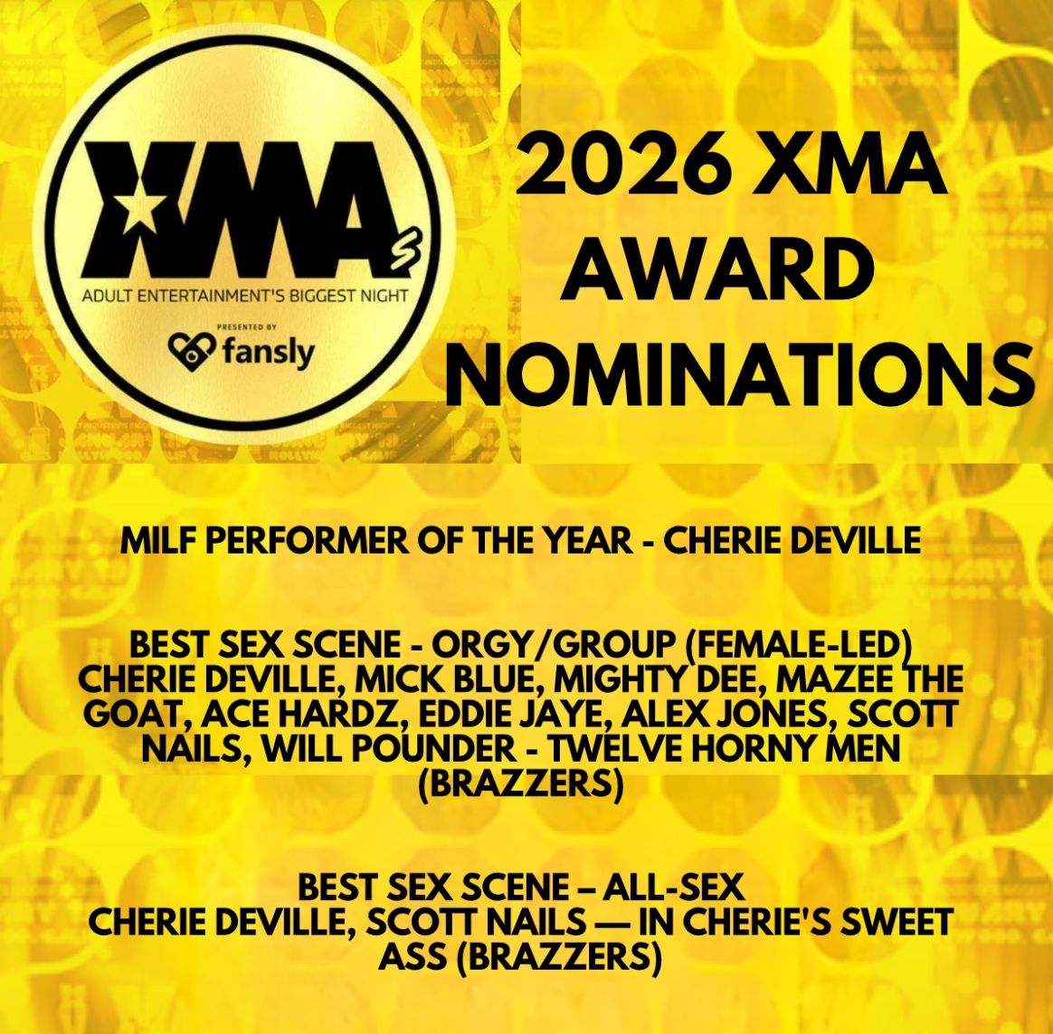 DeVille is acknowledged in the categories of ‘MILF Performer of the Year’, ‘Fav MILF Star’, and two major scene nominations – ‘Best Sex Scene – All-Sex’ for In Cherie’s Sweet Ass and ‘Best Sex Scene – Orgy/Group (Female-Led)’ for Twelve Horny Men – both released through Brazzers.