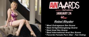 “I’m so honored,” said Rebel. “Thank you to everyone at AVN for this amazing honor. And to my fans, please vote for me! It would mean the world to win.”