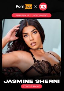 “I’m excited to be appearing at X3 again. Last year, I was at Brazzers, and this year, I’m at Pornhub. I’m going to be wearing the Pornhub gear with some flair added to it and can’t wait to meet all my fans—see you there!” said Jasmine Sherni.