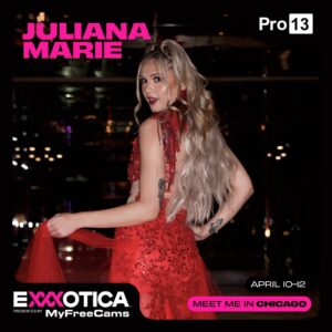 “This is my first EXXXOTICA in Chicago, and I can’t wait to see all my Midwest fans who come to the show! I bought some sexy new outfits and have some surprises in store for them, so make sure to stop by the booth if you’re at the expo!” says Juliana Marie.