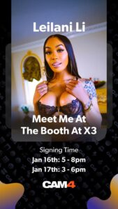 “I’m so honored and excited to be signing with Pornhub and Cam4 this year & can’t wait to see everyone,” says Leilani Li.