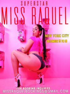 (New York, NY / November 19, 2025) – Miss Raquel is traveling to New York City December 15-18 and is opening limited availability for media interviews, creator collaborations and production opportunities during her stay.