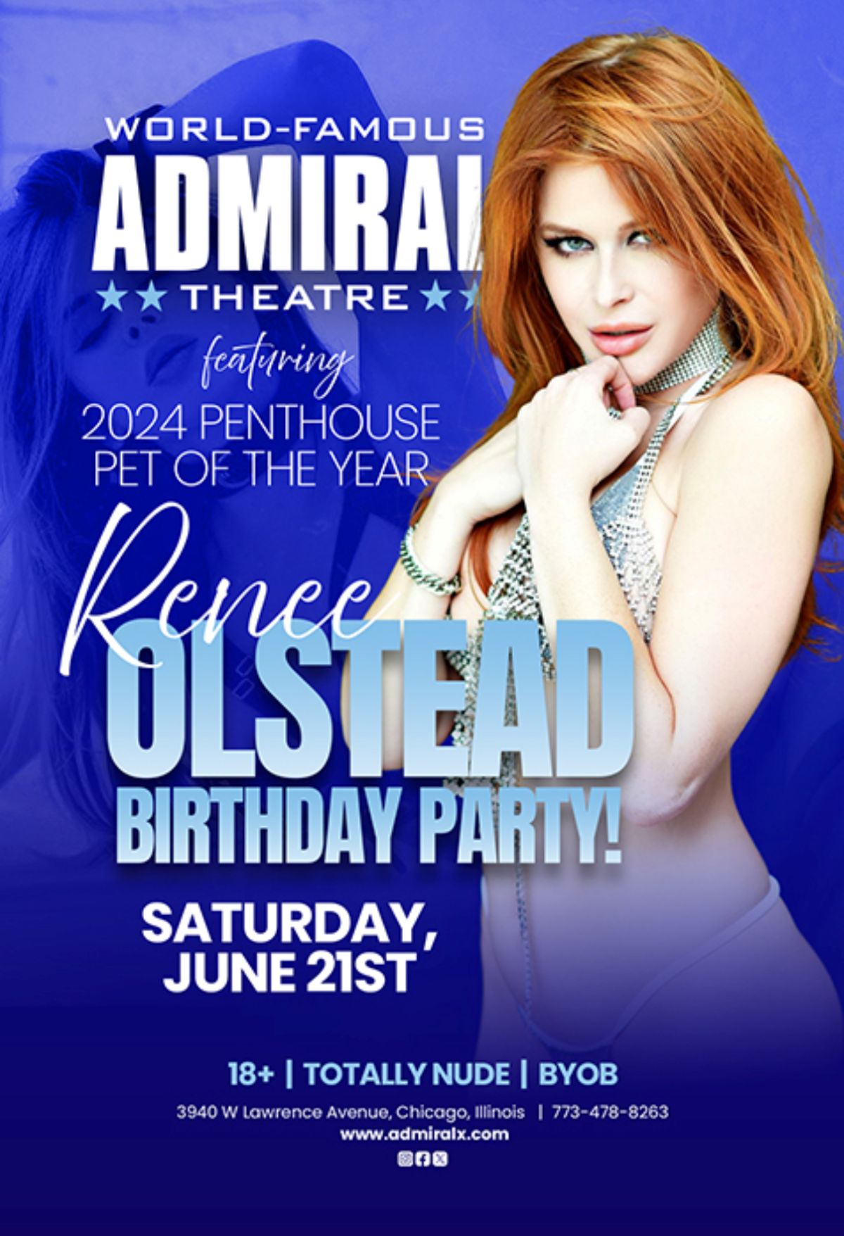 The Penthouse Pet of the Year and adult industry advocate will headline the 18+ BYOB event at the city’s premier gentlemen’s club. “I can’t think of a better way to spend my birthday than sharing it with my fans,” says Olstead. “I know we’re going to have an incredible time together—and Chicago certainly knows how to have fun!”