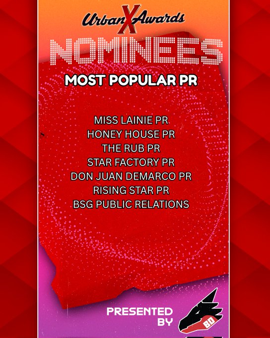 HOLLYWOOD, CA — The 2025 Urban X Awards have announced their list of nominees, and Rising Star PR is excited to announce that once again, they’ve earned a nomination for Most Popular PR. Last year, they took home the trophy. While owner DCypher hopes for a repeat of the honor this year, he admits that he is grateful for the acknowledgement.